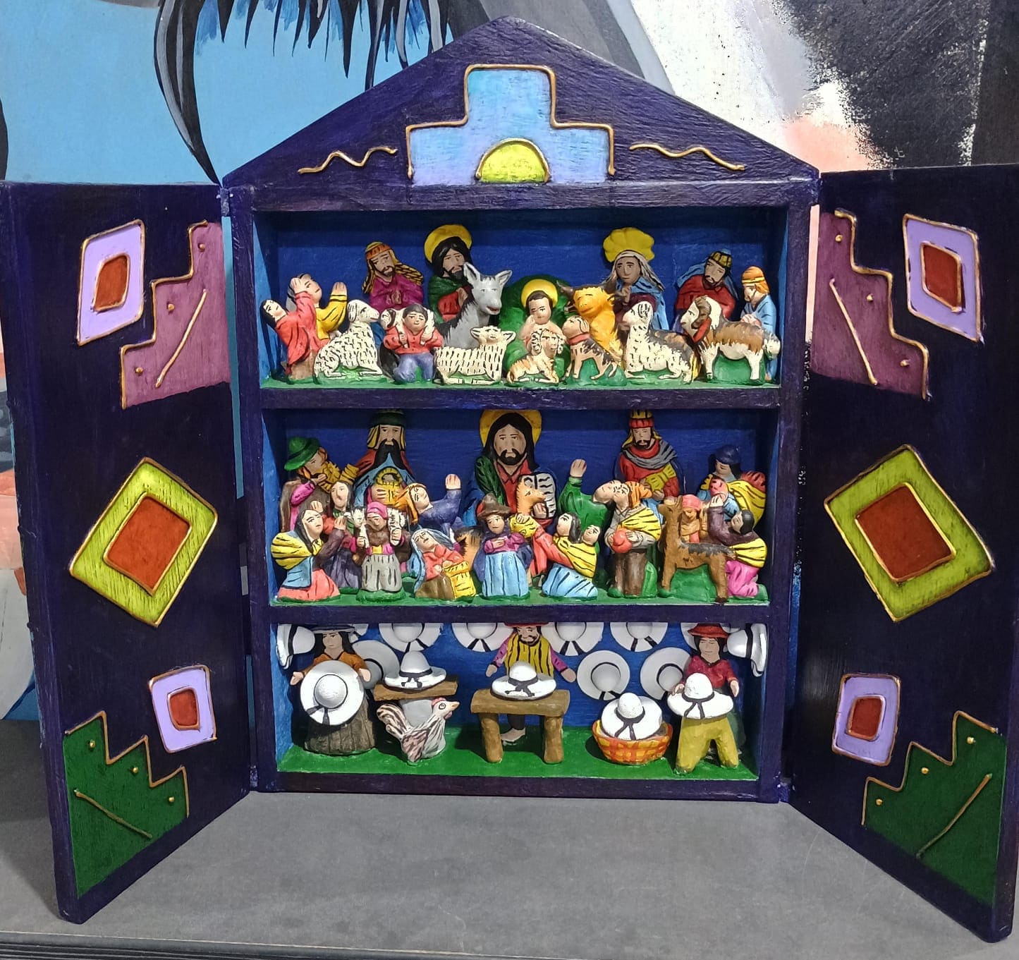 Descubre la magia de la Navidad con este hermoso nacimiento artesanal. Tallado en madera y pintado a mano con vibrantes colores, este retablo es una obra de arte que captura la esencia de la época. Cada figura, cuidadosamente detallada, cuenta una historia y te invita a sumergirte en el espíritu navideño.