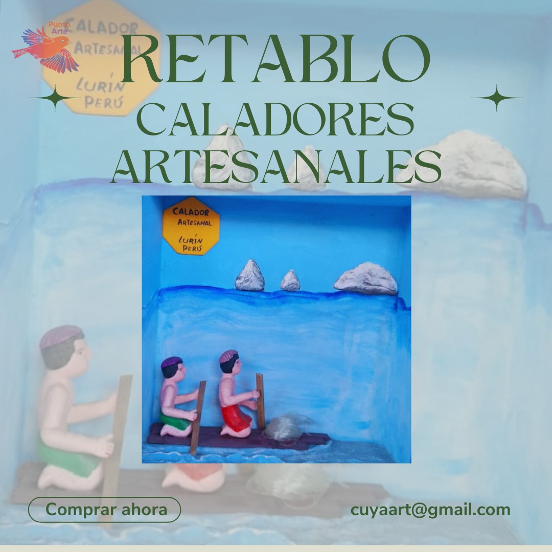 Sumérgete en la tradición pesquera peruana con este retablo artesanal. Creado con madera y pintado a mano, captura la esencia de los caladores en alta mar, luchando contra las olas y buscando su sustento. Una pieza llena de vida y color que te transportará a la costa peruana.